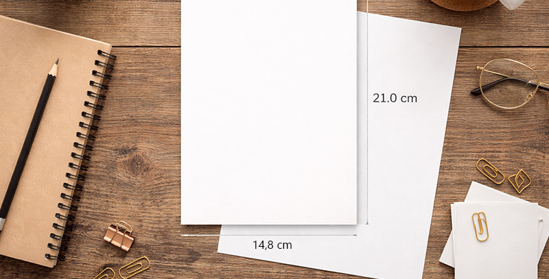 Beim Drucken ist DIN A5 besonders beliebt, weil es sich kostengünstig aus DIN A4 herstellen lässt – durch Halbierung oder Falzung.